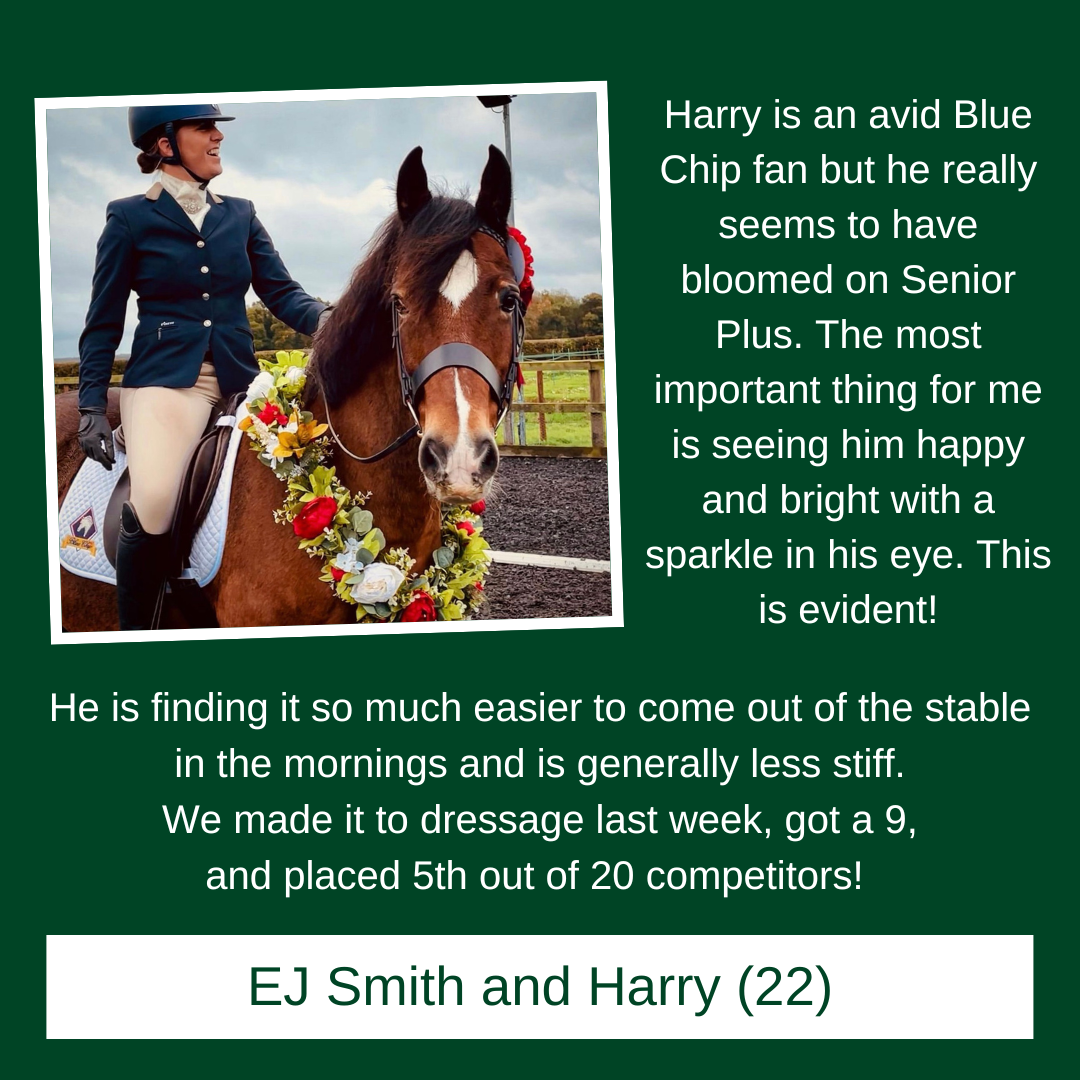 As horses and ponies reach 14 years and older, they may need extra support to stay comfortable and active in their golden years. Blue Chip’s Super Concentrated Senior Balancer and Senior Plus Feed Balancer are specially formulated to meet the changing needs of senior equines.